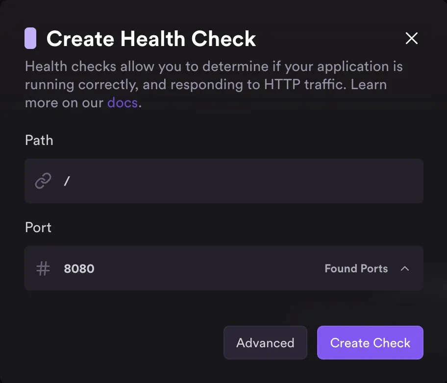 Currently, Ignite only supports HTTP(s)-based health checks. When setting up a health check, you can choose the HTTP path to be queried to make sure the container is alive. To respond successfully to a health check, you must respond on the path specified when creating the health check with aHTTP 2xx response code, such